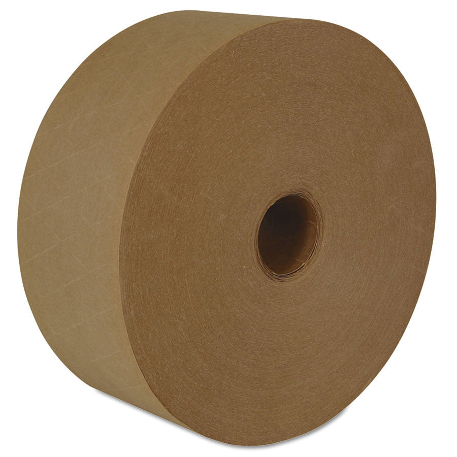 Fiberglass-reinforced tape used for two-strip sealing cartons on the top and bottom. Water-activated adhesive. Works well on recycled cartons and non-unitized loads up to 40 pounds.