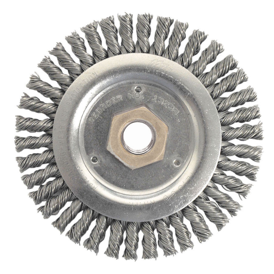 Compared to comparable 4" stringer bead brushes, the high knot count and short trim length creates improved cleaning action, less wire loss, longer brush life, and superior cleaning action. Designed for the most popular size of right angle grinder.