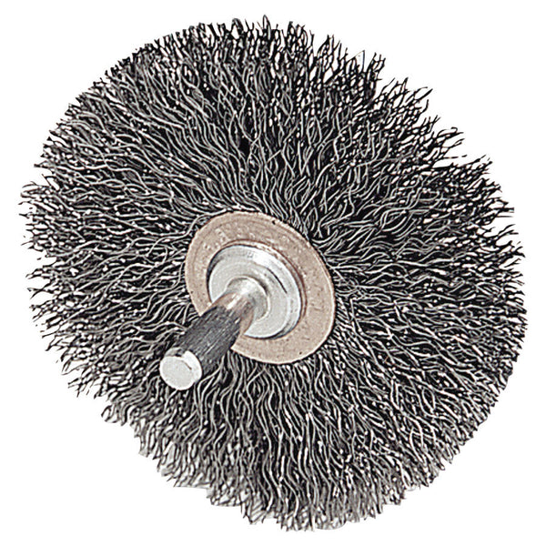 Stem-mounted crimped steel wire brush is for light to medium duty general cleaning applications, ...